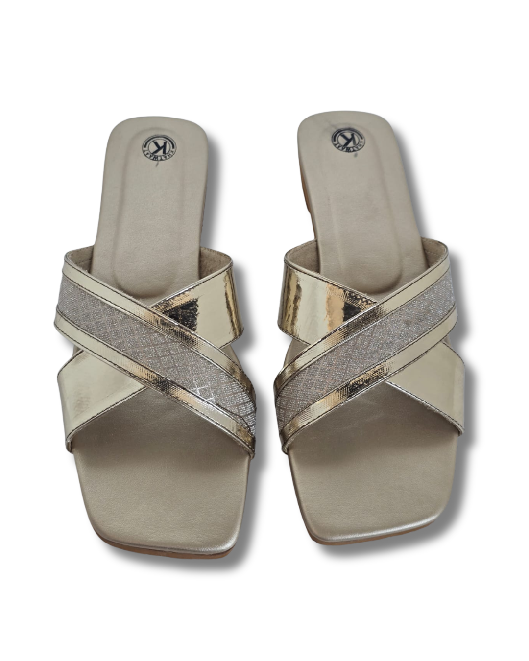 | Strap Design | Criss-cross wide straps with textured glitter inlay |