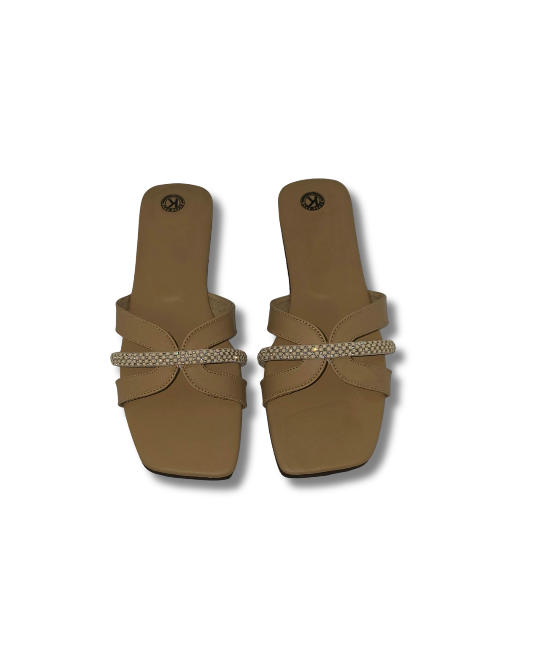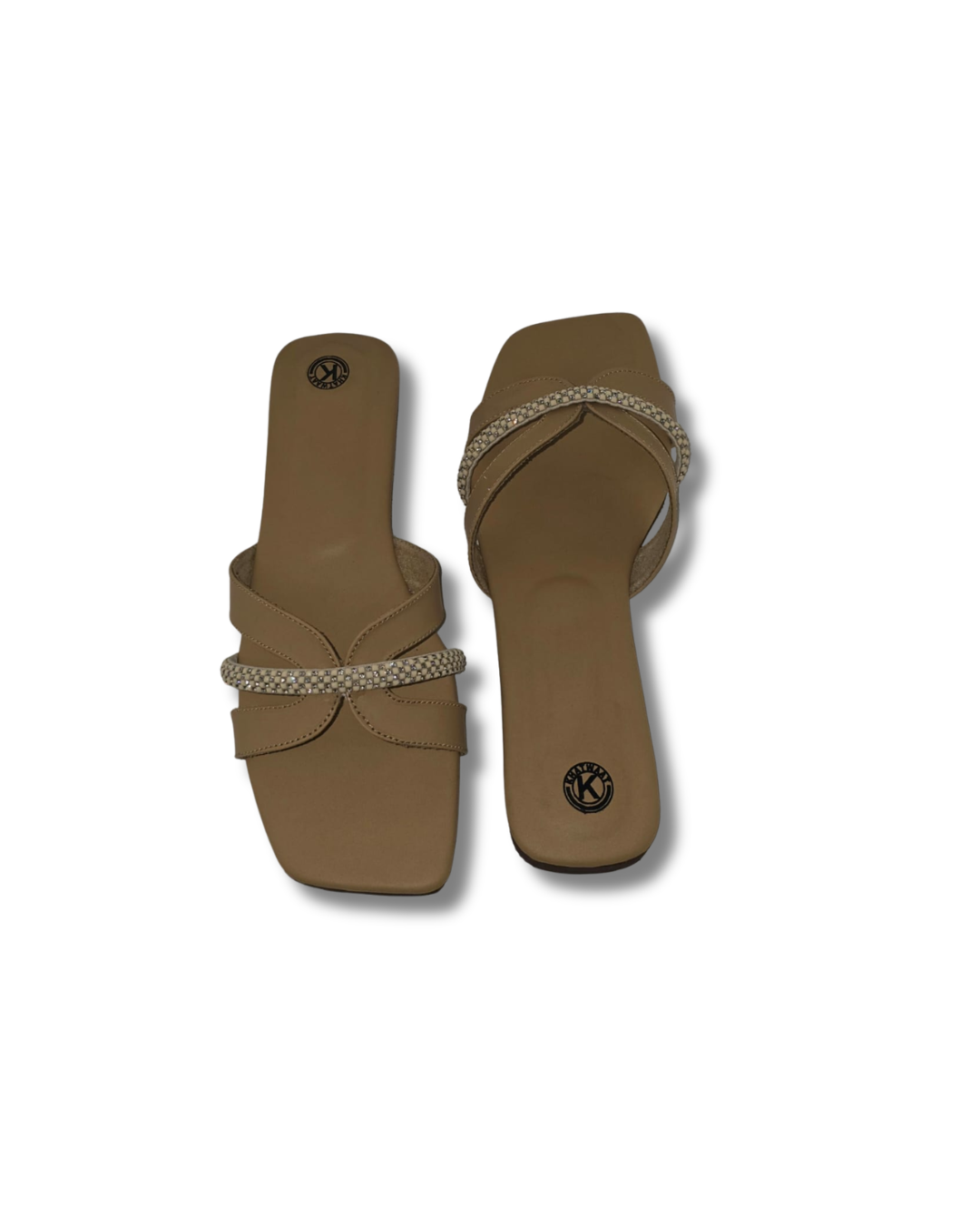 Upper Detail Petal-curved dual straps with crystal-encrusted horizontal band